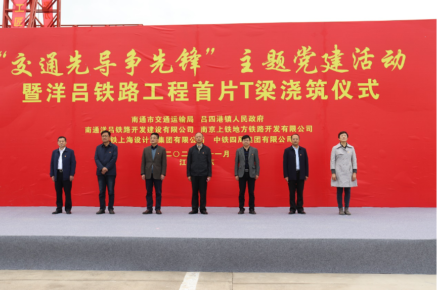 南通市交通運(yùn)輸局黨委委員、鐵路辦主任助理張志忠、啟東市交通局副局長(zhǎng)黃東健、呂四港鎮(zhèn)人民政府副鎮(zhèn)長(zhǎng)盧華、南京上鐵地方鐵路開發(fā)有限公司副總經(jīng)理徐俊,中鐵四局和洋呂鐵路公司相關(guān)人員參加了活動(dòng)。