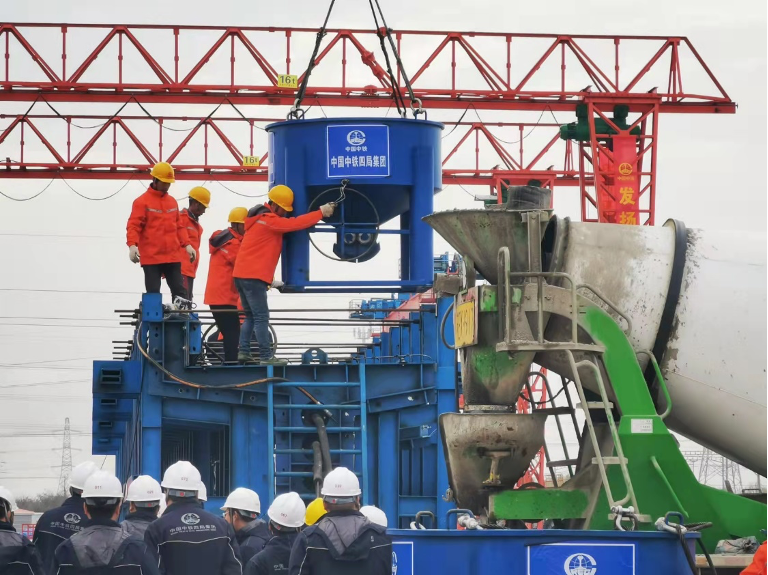 11月16日上午,“交通先導(dǎo)爭(zhēng)先鋒”黨建主題實(shí)踐活動(dòng)暨洋呂鐵路首片T梁澆筑儀式在中鐵四局集團(tuán)有限公司啟東制梁場(chǎng)舉行,“黨員先鋒隊(duì)”和“青年突擊隊(duì)”現(xiàn)場(chǎng)接受授旗。10點(diǎn)28分,隨著南通沿海集團(tuán)副董事長(zhǎng)黃浩宣布,洋呂鐵路首片T梁預(yù)制正式開始澆筑,標(biāo)志著洋呂鐵路建設(shè)進(jìn)入一個(gè)新階段。